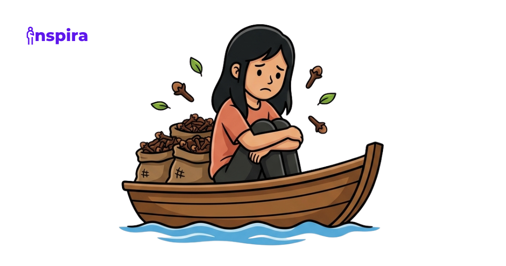Sejurus kemudian, aku berpamitan kepada mereka dan mengucapkan terima kasih. Mereka awalnya memintaku untuk ikut dengan mereka saja, tapi aku menolak. Aku hanya ingin sendiri. Meski tak tahu akan pergi ke mana. Aku terus menyusuri pelabuhan itu. Sampai akhirnya, aroma cengkeh yang samar menyapa hidungku. Sekelebat ingatan memenuhi kepalaku. Tanpa sadar, aku berjalan menuju sebuah kapal berukuran sedang yang tengah memuat cengkeh. Aku berdiri di depan kapal itu, termenung menonton orang-orang yang lalu-lalang, mengangkut cengkeh.